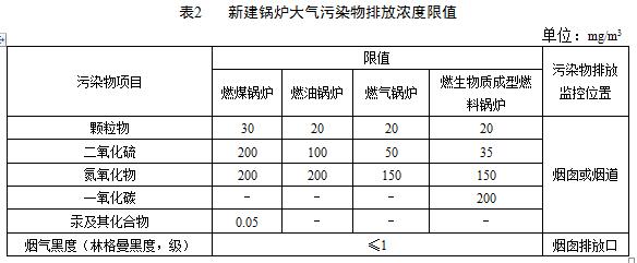 二是新建锅炉自2019年4月1日(本标准实施之日)起执行表2规定的大气污染物排放限值;
